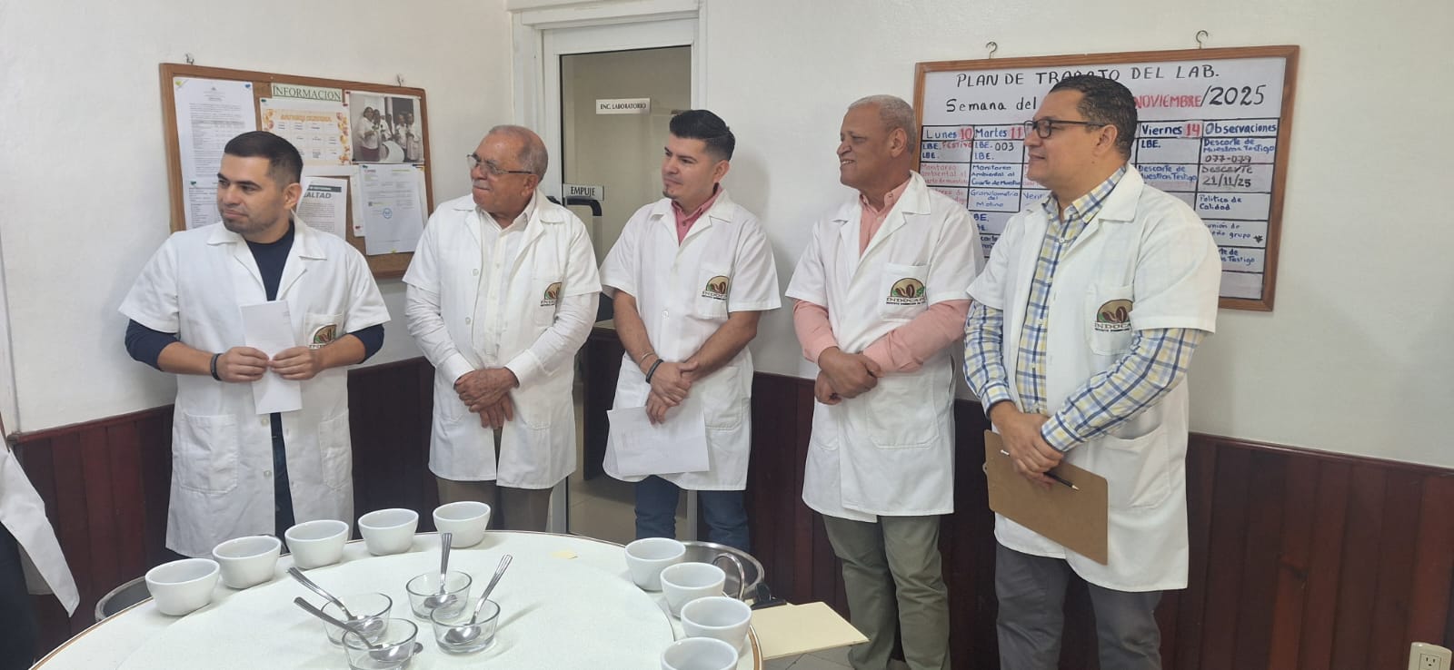 Estuvieron presentes en la actividad Leonidas Batista Díaz, Director Ejecutivo; Héctor Jiménez, Subdirector Técnico, Celiné Herrera, Especialista en Agronegociosnfel FAO, Henrry Ñuñez, encargado Departamento de Mercados Certificación; Gladys Romero Pozo, encargada del Laboratorio de Catacion Raúl Melo e integrantes del panel de Catacion del INDOCAFE.