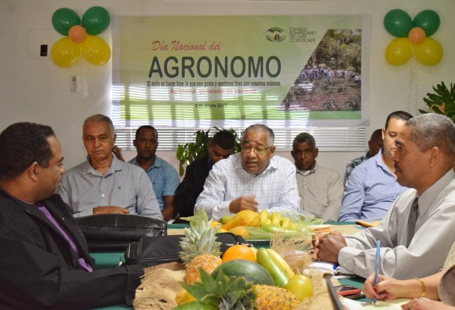 Santo Domingo - El funcionario en su intervención abordó sobre las ejecutorias del CODOCAFE en el período 2012-2017, al cumplirse cinco años de la presente gestión que el preside,y aprovechando la ocasión para felicitar en su día a todos los agrónomos que conforman este Consejo y exhortó a no desmayar y seguir firmes para lograr las metas del CODOCAFE, que es mejorar la calidad de vida de los productores y sus familias.