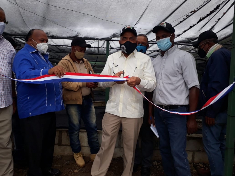Loma del Yaqué, San Juan. El director ejecutivo del Instituto Dominicano del Café (INDOCAFE), Leónidas Batista Diaz, junto a Tony Luciano, presidente de la Federación de Caficultores y Agricultores para el Desarrollo de San Juan, Ins. (FECADESJ), hizo el corte de cinta en la inauguración del moderno germinador de café de variedades residentes a la roya, dicho germinador tiene la capacidad de producir unos setecientos mil fosforitos de café de variedades catimor T8667 y salchimores.