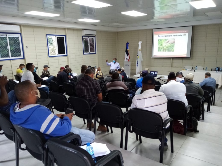 -Bohechio, San Juan de la Maguana. El Instituto Dominicano del Café (INDOCAFE) impartió un taller sobre Manejo Integrado de Plagas de Café con énfasis en Broca, a los técnicos de la Unidad Técnica Ejecutora de Proyectos de Desarrollo Agroforestal de la Presidencia (UTEPDA).